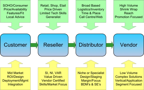 Resellers build their business model (skills, profit mix, growth aspirations, technologies, key vendor partners and associated costs) around how they believe they can offer a competitive and differentiated service to their targeted customers. I.e. compare a SoHo/SMB (5-50 employees) reseller (who is often also an SMB) to that of a larger VAR targeting mid market (250+ employees) and above