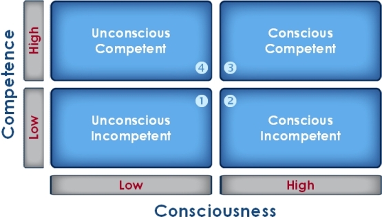 But first let’s look at a quick reminder of the “Conscious Competence” model.